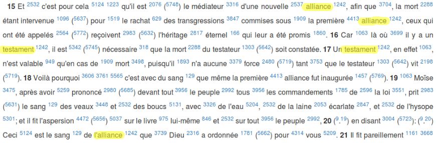 Et c'est pour cela qu'il est le médiateur d'une nouvelle alliance, afin que, la mort étant intervenue pour le rachat des transgressions commises sous la première alliance, ceux qui ont été appelés reçoivent l'héritage éternel qui leur a été promis.