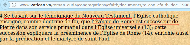 Ainsi le vatican affirme sans sourciller que l'évêque de Rome est
