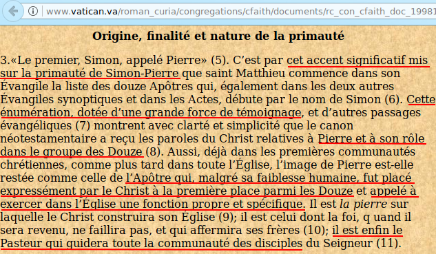 Le vatican ne craint pas de publier sur son site que la doctrine, selon laquelle le pape est le successeur de Pierre, est basée sur les Écritures du Nouveau Testament...