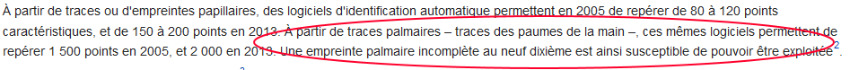 Et ce n'est pas tout, outre les empreintes digitales, un autre fait scientifique, peu connu du grand public, concerne l'exploitation des empreintes palmaires laissées par les... paumes de la main. Ainsi, une