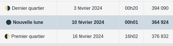 Pour éviter d'oublier les jours de nouvelle lune — ce qui m'arrive plus que régulièrement — j'ai mis en place, pour mon usage personnel, un système de rappel automatique des nouvelles lunes à venir. Le but étant d'être averti, au choix, 30, 7 et/ou 3 jours avant la prochaine nouvelle lune. Je le mets ici dorénavant à disposition de tous.
