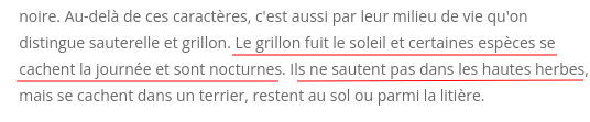 ensifères), on ne peut vraiment pas dire que le grillon ressemble fort à une sauterelle, un criquet, une locuste ou un acadien...