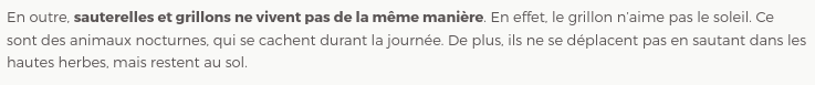 Sauterelle, criquet et grillon sur «insectes comestibles»